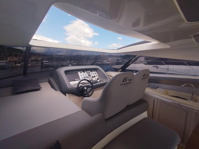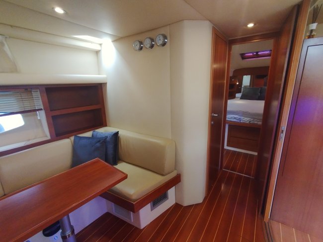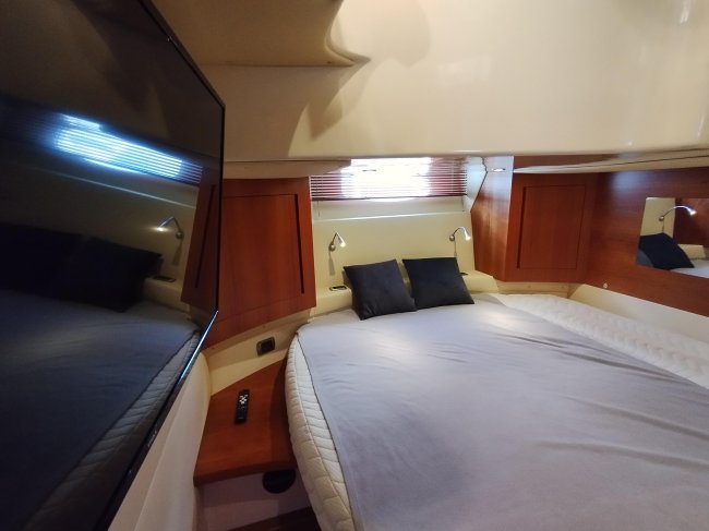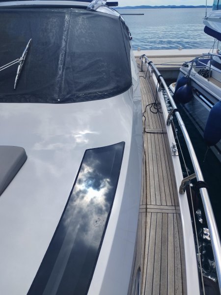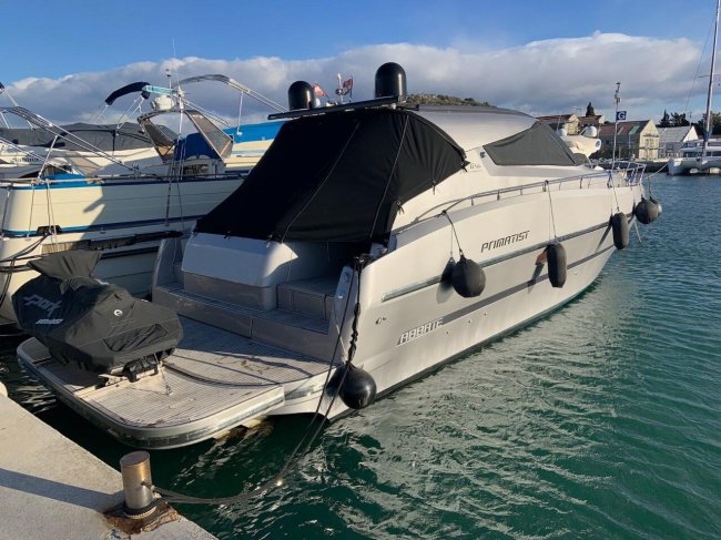 VHighlights: The boat features a hydraulic swim platform, a solar panel with inverter, an ultra-high anchor with a stainless steel chain, a low-hour generator, a freshly serviced engine, anti-fouling paint, a dinghy garage, etc.