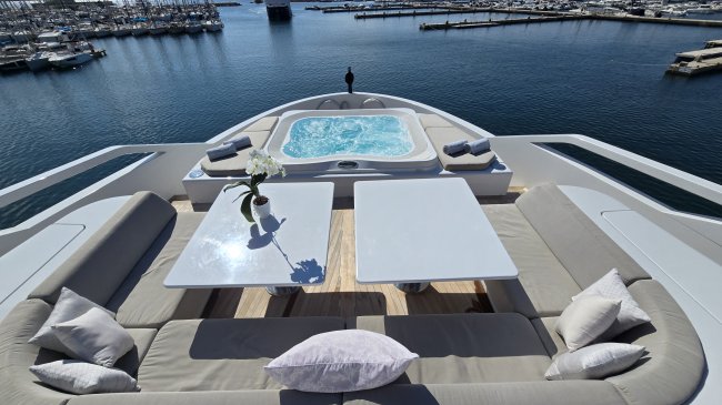 Launched in Savona at the Palumbo shipyard in 2019, this 40-metre flagship model in the Extra Yachts lineup is built entirely from aluminium that assists in the efficiency of the vessel and adds to the spacious 390 GT volume that is available onboard. The same free-flowing atmosphere that makes navigating her exterior decks a pleasure has been incorporated into the interior design and layout for an uncluttered and open arrangement that suits the beach-house style of L.A.U.L. so well. Designed inside and out by Francesco Guida, the ISA EXTRA 130’s naval architecture is a collaboration between Studio Rogantin and Palumbo Superyachts’ technical office.